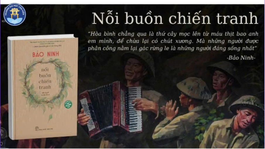 Kính chào quý thầy cô và quý độc giả. Em tên là Võ Văn Thương, sinh viên ngành Việt Nam học, khoa Khoa học Xã hội và Nhân văn. Đến với cuộc thi “Giới thiệu về sách 2025”, em muốn giới thiệu đến quý vị và các bạn cuốn sách mà em yêu thích, cũng là cuốn sách đã tác động mạnh mẽ đến tư duy của bản thân, đồng thời khơi dậy khát vọng, ý chí phấn đấu, tự tin bước vào kỷ nguyên mới của dân tộc. Kính thưa quý thầy cô và quý độc giả, chiến tranh ở Việt Nam đã in sâu trong tâm trí của mỗi người dân Việt qua rất nhiều tác phẩm điện ảnh và văn học, với nhiều góc độ khai thác khác nhau. Trong số đó, có một cuốn sách ra đời cách đây hơn ba mươi năm nhưng đến nay vẫn được tái bản nhiều lần, được đông đảo bạn đọc trong nước và quốc tế yêu thích, đón nhận. Đó chính là tiểu thuyết Nỗi buồn chiến tranh của nhà văn Bảo Ninh, cuốn sách được mệnh danh là “đại sứ” đưa văn học Việt Nam đến gần hơn với độc giả quốc tế.